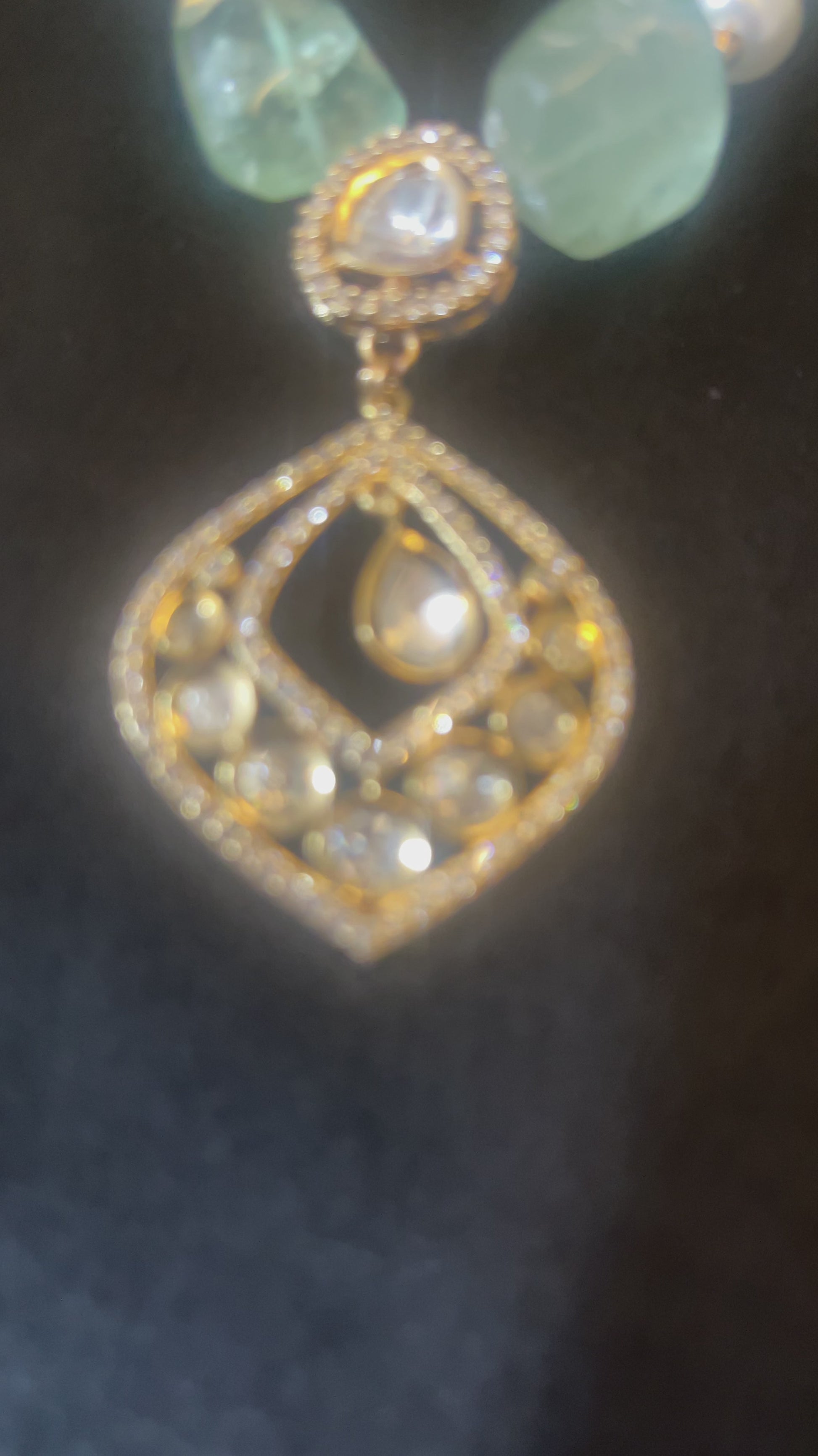 Beads pendant set crafted in radiant Moissanite Kundan an exquisite blend of sparkle and tradition for timeless elegance.