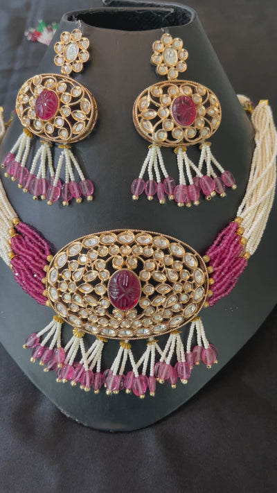 Carved Ruby Bead Kundan Set