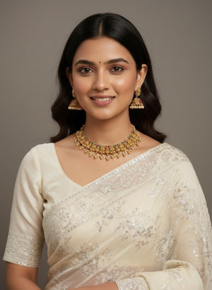 Temple-style choker set in matte gold polish with ruby stones perfect for weddings, festivals & traditional wear.
