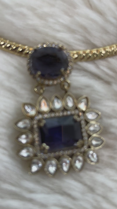 Brass Kundan hasli with CZ & AD stones, gold polish—lightweight, elegant & perfect for weddings or festive occasions.