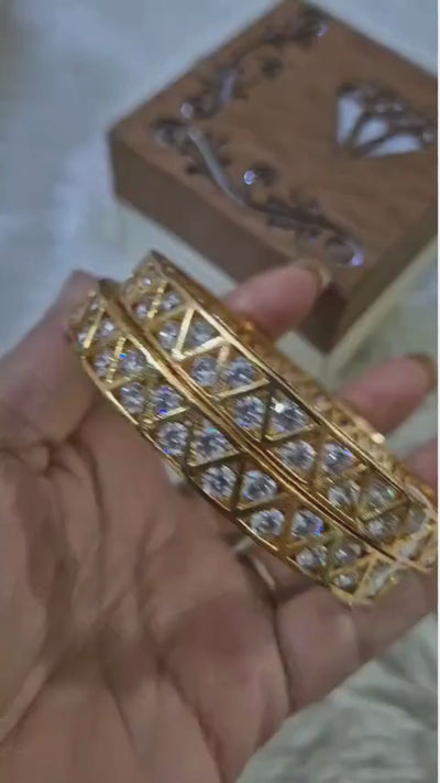 Elegant micro gold-plated bangles adorned with sparkling CZ stones. A timeless pair that adds charm to every occasion.