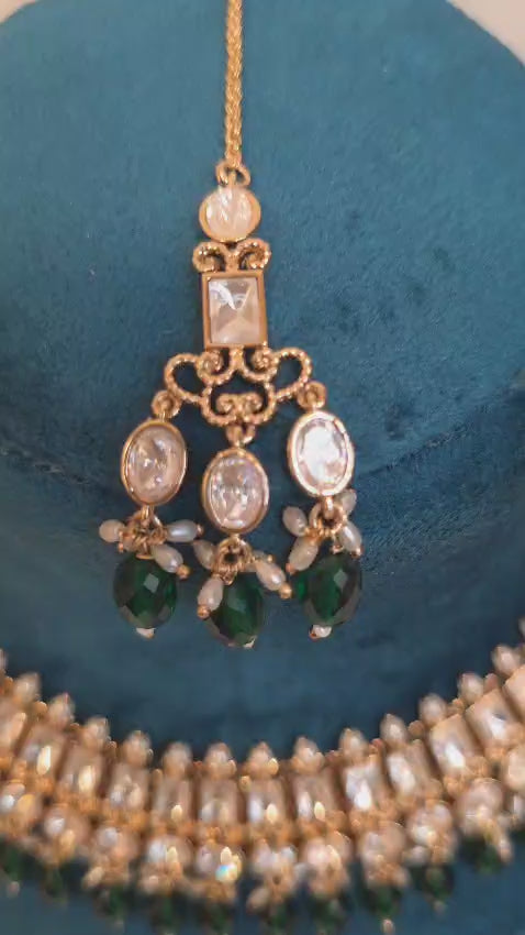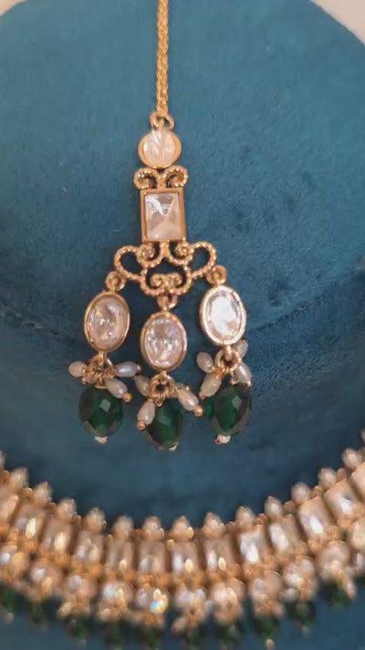 Luxurious moissanite kundan bridal set with gold finish, handcrafted for timeless elegance and radiant wedding charm.